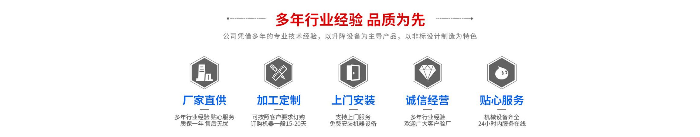 濟南翔宇升降機械有限公司是集研制、設計、開發、生產為一體的電動液壓升降平臺,液壓升降貨梯,升降機,移動升降機,貨梯,升降機廠家,升降平臺價格,升降平臺廠家專業生產企業。本公司生產設備精良,技術力量雄厚,工藝先進合理,檢測手段齊全,所有產品符合國家行業標準,全部產品已經通過國家特種設備檢測站檢測。公司生產的液壓升降臺,采用意大利、法國、德國液壓泵站系統,意大利液壓系統防爆裝置和液壓自鎖裝置嚴格按照國家標準。公司還可以根據用戶的需求設計制造包括特殊尺寸、承載能力、防爆電器的液壓升降臺?! 」緭碛幸慌鷥炐愕脑O計人才,其中僅高級技術人員就20多人,他們或是來自名牌高等院校,或是在長期實踐中精通了行業的先進技術,成熟中求創新,使得我們的產品處于不?。煌瑫r我們還擁有一大批技術熟練的產業工人,他們是保證高等級產品質量的關系因素。  公司經過多年的對液壓升降設備的研制和探索,積累了豐富的專業技術和經驗,現已成為國內設備先進、產品齊全的液壓升降平臺,液壓升降機生產制造企業。目前公司產品有八大系列六十多個品種,產品質量符合JB/T9229.1(2.3)-1999標準。產品設計新穎、結構合理、升降平穩、操作簡單,廣泛應用于工礦企業、鐵路、公路、機場、郵電、石油、電力等部門的高空作業、安裝、維護;生產線上的貨物...